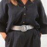 La ceinture est disponible dans une gamme de tailles allant de 80 à 140 cm (du centre de la boucle jusqu'à l'extrémité de la ceinture), assurant un ajustement parfait pour chaque silhouette avec élégance et confort.